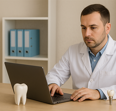 نُقيّم صحة اللثة وكثافة العظم. حتى مع نقص العظم، تتوفر حلول مثل الترقيع أو زراعة قصيرة.
